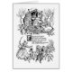 Een vrouw die een kom bouillon vasthoudt, staat voor de deur van haar schoen, omringd door wortelen en kruipen met kinderen en een hond in deze afbeelding van het kindermeisje uit een kinderboek uit 1912. De schoen heeft een dak met een stovepipe die de bovenkant uitsnijdt en houten treden.