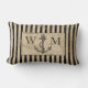 Dit nautische monogram kussen heeft een zwarte en beige gestreepte achtergrond met een zwart anker in het midden en wereldkaart overlay. Personaliseer het monogram met uw eigen initialen. Ontworpen door de wereldberoemde kunstenaar Tim Coffey.