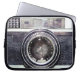 Oude zwarte camera laptop sleeve