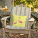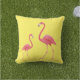 Outdoor gooi kussen wordt getoond in een effen kleur van geel met een leuke flamingo print. Pas dit kussen aan of koop zoals het is. Stock Afbeelding
