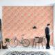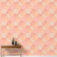 Een overlappend ontwerp met een pastelperzikkleur en traditionele Chinese fans.