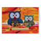 Verras je geliefde met deze 2 schattige uilen op een oranje achtergrond met de tekst "love".