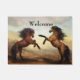 Een paar wilde paarden met bergen op de achtergrond. 100% aanpassing. Klik op de knop AANPASSEN om een van de lettertypen of afbeeldingen toe te voegen, te verplaatsen, te verwijderen, te wijzigen of te wijzigen.