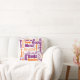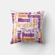 Een zoet ontwerp van de gooikussens op voor en achter die bedankt zeggen die met paarse en oranje "Dank u" worden ontworpen die in verscheidene talen in een verscheidenheid van lettersoorten over een witte achtergrond worden geschreven. Klik op "Aanpassen" om een achtergrondkleur te selecteren die geen wit is.