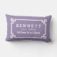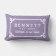 Het stijlvolle lumbale kussen is voorzien van een wit Grieks, geometrisch grensontwerp en een monogram dat gepersonaliseerd kan worden met een getrouwde of familienaam, een datum die is vastgesteld voor het jaar dat het lijst is gehuwd of het jaar dat het eerste kind is geboren. Pas de amethyste paarse achtergrond aan om met uw openluchtdecor te coördineren.