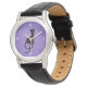 kwaadaardig kattenhorloge met een prachtige illustratie van een gracieuze zwarte kat met gloeiende ogen op een nachthorloge, op een donkere paarse gestructureerde achtergrond. Dit stijlvolle horloge zal een geweldig cadeau zijn voor een kattenliefhebber. U kunt de kleur van het horloge veranderen of zelfs een heel ander type horloge kiezen. Aangezien katten een populair Halloween-symbool zijn, is dit kwaadaardige kattenontwerp ook geschikt voor Halloween.