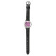 Een horloge met een elegant abstract design. Donker paarse amethist kleur met linten van goud genesteld tussen gelaagde strata. Rijk en mooi design.