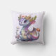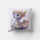 Kussen met een illustratie van een mythische draak. Paarse en blauwe schubben. Een bloemrijke gouden kroon met hoorns siert zijn hoofd. Magisch, leuk en vriendelijk.