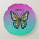 Paarse en Blauwgroen Vlinder Gepersonaliseerd Rond Kussen