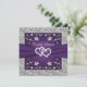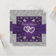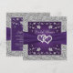 Blijf bij je paarse en zilveren Love Hearts bruiloft thema met deze romantische bruids- of bruiloft douche uitnodiging met afbeeldingen van een paar samengevoegde harten bovenop een paarse lint afbeelding die over het midden van de uitnodiging loopt. Er is een gesimuleerde zilveren rand rond de randen van de kaart aan de voor- en achterkant. De douchedetails zijn grijs gedrukt op een paarse achtergrond op de achterkant met een zilveren bloemboog aan de bovenkant. Als u extra overeenkomende items nodig hebt, stuur dan een e-mail naar niteowlstudio@gmail.com of gebruik de Zazzle-chatfunctie om contact met u op te nemen.