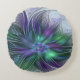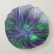 Paarse groene bloem Moderne Abstracte Kunstfractal Rond Kussen