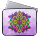 Handgetrokken kunst, dragonfly mandala in paarse, roze, kalkgroene en gele zonnebloemen, een kunstlaptop of een tablethoesje.