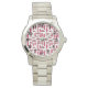 Dit vrouwenhorloge heeft een herhalend ovalenpatroon in retro-paars met verspreide witte ovalen op een gebied van wit.