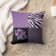 Een patroonmash met een prachtige bloem, de grote paarsste paars Iris, in combinatie met het donkerblauwe en witte streepzebrapatroon, een getextureerde kwart en ten slotte een gradiëntmedium tot een licht paarse kwart. De rug is een diep paarse zwarte. Geboren uit mijn eigen originele fotografie en grafisch ontwerp. Er zijn verschillende andere kussens in mijn collectie van dierenprint en bloementhema, die allemaal te vinden zijn in die zo genoemde categorie - Animal Print With Flowers.