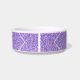 Een lieflijk lavender medium met paars faux glitterpatroon met een kunstmatig deco-geïnspireerd modern geometrisch overlappend patroon met uw katten- of hondennaam die direct op een witte keramische kom is afgedrukt.