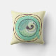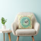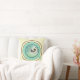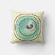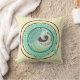 Decoreer je ruimte met deze mooie, kussen met een cirkelvormig vignet met een Art Nouveau lino-cut stijl pauw gestileerd met veren, bladeren, bloemen en halve maan. Dit canvas wordt afgewerkt in tinten turquoise en paars van wijn met een ecru beige achtergrond.