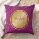 Paarse Roze Glitter Geborsteld Metaal Monogram Naa Kussen