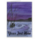 Een klein waterverf landschap van een sneeuwveld en griebel met bergen tegen een briljante, avondhemel.