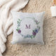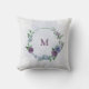Mooie romantische kussensloop met stoffige blauwe en paarse bloemen en enkele groene bladeren .