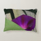 Rechthoekig, 16 x 12 inch, accentkussens, fijngemaakt, geborsteld polyester met foto van een levendige roze, paarse morning glory-bloem onder een groen blad, terwijl andere bladeren schaduwen werpen op een houten grijze hek.