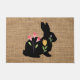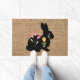 Doormat met het silhouet van een paaskonijn met lentesbloemen op de achtergrond van de burlap. Geweldig thuis voor een rustige lente decor. Ontwerp door Alma Wad.