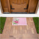 Deurmat afgebeeld met een lichtroze kleur achtergrond en witte rand met een Happy Easter tekst en een mooie bloemenprint. Kleuren: Lichtroze. Pas dit object aan of koop zoals het is.