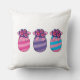 Een afbeelding van drie oostereieren met bloemen en lint in stripe kleuren van roze, magenta en violet. Dit ontwerp is een cadeauidee voor verrassing-liefhebbers, oejagers-liefhebbers en pastelkleurliefhebbers.