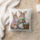 Schattigee waterverf konijntjes met bloemetjes en gekleurde eitjes in paasmand