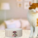 Het ontwerp van de blikvanger is voorzien van een roze gekleurde paddenstoel met roze floralen en groene bladeren op een gestreepte achtergrond.