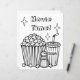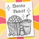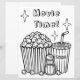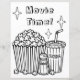 Jolie page de coloration rétro avec pop-corn, shaker sel et soda. Heure du film en lettres bulles. Idéal pour les classes de l'école primaire ou les fêtes d'anniversaire.