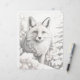 Page de coloriage en niveaux de gris montrant un renard debout dans la neige dans une forêt d'hiver. Choisissez le papier pour votre support préféré. Je suggère le papier recyclé pour les crayons, les pastels et le charbon de bois.