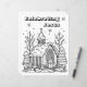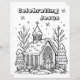 Page de coloriage avec un thème de Noël. Jolie église avec des vitraux et un fond enneigé. Le texte dit : "Célébrer Jésus". Mignon pour les enfants, les adolescents ou les adultes.