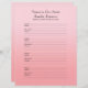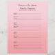 Cette page de remplissage customisée de 8,5 po x 11 po, en dégradé rose pâle (plus clair à plus foncé) avec lettrage noir, est personnalisée et parfaite pour remplir des livres commémoratifs ou des livres d'hôtes de style classeur. Ce papier de remplissage est facile à personnaliser - express votre propre sentiment, changer de nom, et supprimer ou modifier les dates. La page est pré-formatée pour que les participants ajoutent leurs coordonnées et un message lors de leur connexion, 4 noms par page. Vous devrez percer des trous pour adapter votre classeur. Tous droits réservés © 2014 Alan & Marcia Socolik