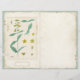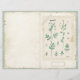 Page de journal vintage avec l'illustration fleur sauvage botanique jaune sur l'avant et l'illustration fleur sauvage blanc sur l'arrière. Pages turquoises d'arrière - plan cachemire et de parchemin avec étiquettes d'or, ruban et détails de couture dans le centre. Plier en deux pour créer des pages de journal.