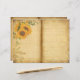 Joli arrangement de tournesol sur papier d'effet de parchemin ancien, avec du texte et des notes de musique faiblement défraîchis. Ce papier de style vintage est fait comme une double page, donc sur une option 8.5x11 pouces tout ce que vous avez besoin de plier en deux et vous aurez de belles pages de journal vintage prêts pour vos créations. Le dos de cet article a une conception de parchemin vieilli assortie avec des lignes faibles pour vos pensées et vos aspirations. Des designs plus vintages et des ornements de scrapbook sont disponibles dans notre boutique Zazzle, ainsi que de nombreux autres styles de scrapbook et de journaux. Pour obtenir les meilleurs résultats, sélectionnez un papier mat et texturé.