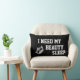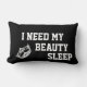 Lumbar stijl kussen in zwart/rood met een litho-afdruk van een brigadekroon en zegt dat ik mijn schoonheid slaap nodig heb. Pas dit object aan of koop gewoon zoals het is.