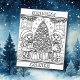 Kleurplaat met een jongetje en een meisje die cadeaus openen op kerstochtend.