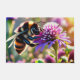 Une abeille vibrante survole délicatement une fleur violette qui fleurit. Le corps rayé de l'abeille contraste avec les pétales doux, soulignant la beauté de la pollinisation.