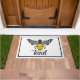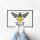 Cette conception de tapis de porte comporte une abeille ornée sur le devant avec le "type" de travail écrit ci-dessous dans une police de script. Le design abeille est noir et jaune sur un arrière - plan blanc éclatant.