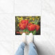 Ce tapis de bienvenue présente de magnifiques tulipes rouges orangées, un rappel du printemps et du renouveau !