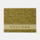 Un tapis de porte élégant d'accueil de parties scintillantes d'or pour inviter vos invités dans le style. La natte de regard de parties scintillantes d'or de faux a une bande d'or avec les mots bienvenus, cela que vous pouvez customiser, pour la rendre unique et spéciale.