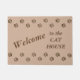 Cette natte mignonne a une frontière de dessus et de bas des empreintes de pattes sales à travers un fond bronzage clair. Le centre indique actuellement l'accueil à la MAISON de CAT dans le brun, mais peut être facilement customisé à quelque chose que vous voudriez.