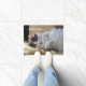 Copyright 2015-2016. Une natte pour l'avant de votre maison, avec une photographie d'un chat mignon dormant, et le ~Welcome~ de mot. --- Cette photographie est garantie les droits d'auteur par moi, Christina Spiegeland.