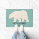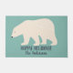 Visez le paillasson pour des invités de vacances, littéralement. Cette natte comporte une illustration d'un ours blanc en crème contre un fond turquoise clair et votre propre choix de message et de nom de salutation dans le lettrage foncé de bleu marine d'amusement