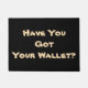 Cette natte d'amusement a une question imprimée dans de grandes lettres pour vous rappeler de vérifier que vous avez votre portefeuille ou bourse car vous quittez la maison "vous faites obtenir votre portefeuille ?" est la question que vous verrez comme vous allez ouvrir votre porte. Le rappel doux de Th pulsera votre mémoire pour vérifier une deuxième fois votre sac ou des poches pour votre portefeuille avant que vous quittiez votre maison, c'est également une natte originale et d'amusement à avoir dans votre maison. C'est une natte personnalisable, vous pouvez choisir la couleur et la personnaliser avec votre propre texte si vous souhaitez à.