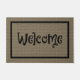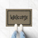 Grand tapis de porte avec un design de burlap numérique, et le mot Welcome en noir amusant et fantaisie Halloween / Autumn lettering. De Heard_.