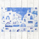 Une aquarelle bleue et blanche du village d'Oia sur l'île grecque de Santorin.