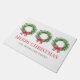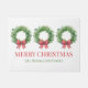 Ce tapis de portes de Noël personnalisé comporte des couronnes vertes avec des arcs en vichy rouges. Personnalisez avec votre choix de texte et de nom spéciaux.