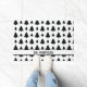 Le motif original de Destei, aux silhouettes de sapin de Noël noir sur une couleur arrière - plan blanche. Il y a aussi une zone de texte personnalisable pour un nom ou un autre texte personnalisé. Ce design a été créé avec l'esthétique minimaliste moderne en tête.