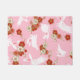 Un tapis de porte représentant l'art japonais de style washi - des Sakuras et des lapins en rose.